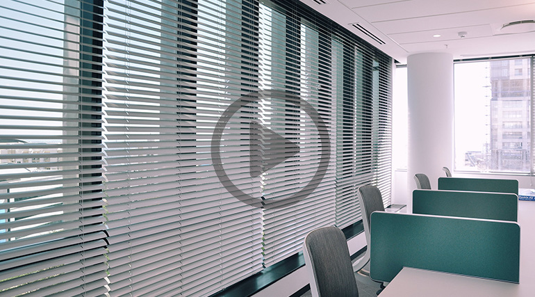 50mm Aluminium, Lantex, Tecwood and Timber Venetian Blinds: The motor fits neatly into the headrail and cannot be seen. 220V and Li-Ion battery motors are available. Both Tilt and Lift function are motorised.